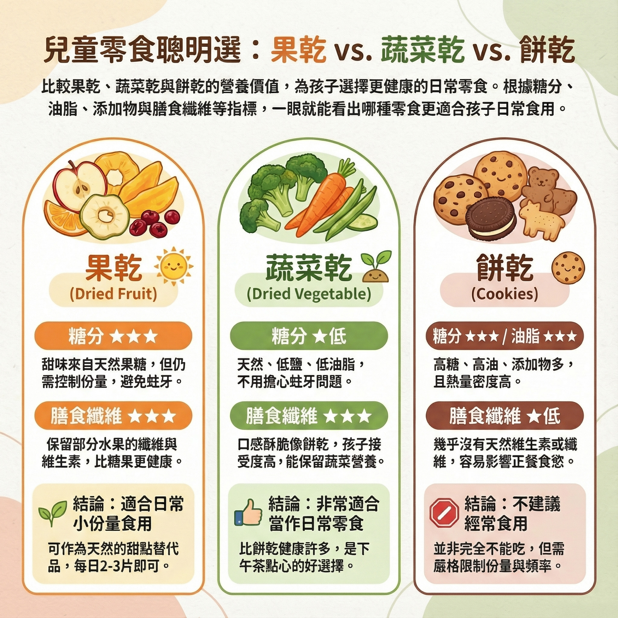 那麼,小孩可以吃果乾嗎?蔬菜乾比餅乾更健康?哪一種才最適合作為日常零食?