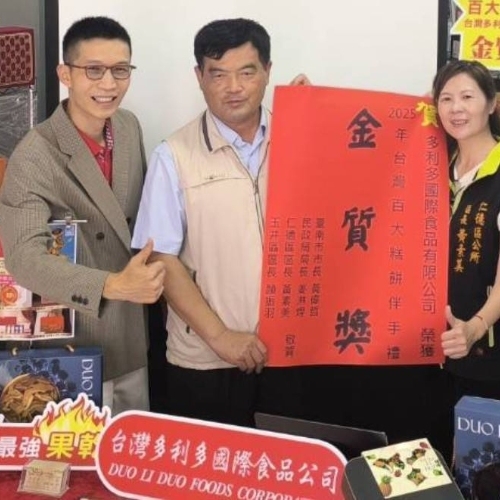 台灣伴手禮再添榮耀!以芒果乾打出市場知名度的多利多國際食品有限公司,於114年榮獲「2025台灣百大糕餅伴手禮金質獎」,不僅展現台灣農產加工的獨特實力,更象徵台灣在地農特產品躍升國際舞台的重要里程碑。