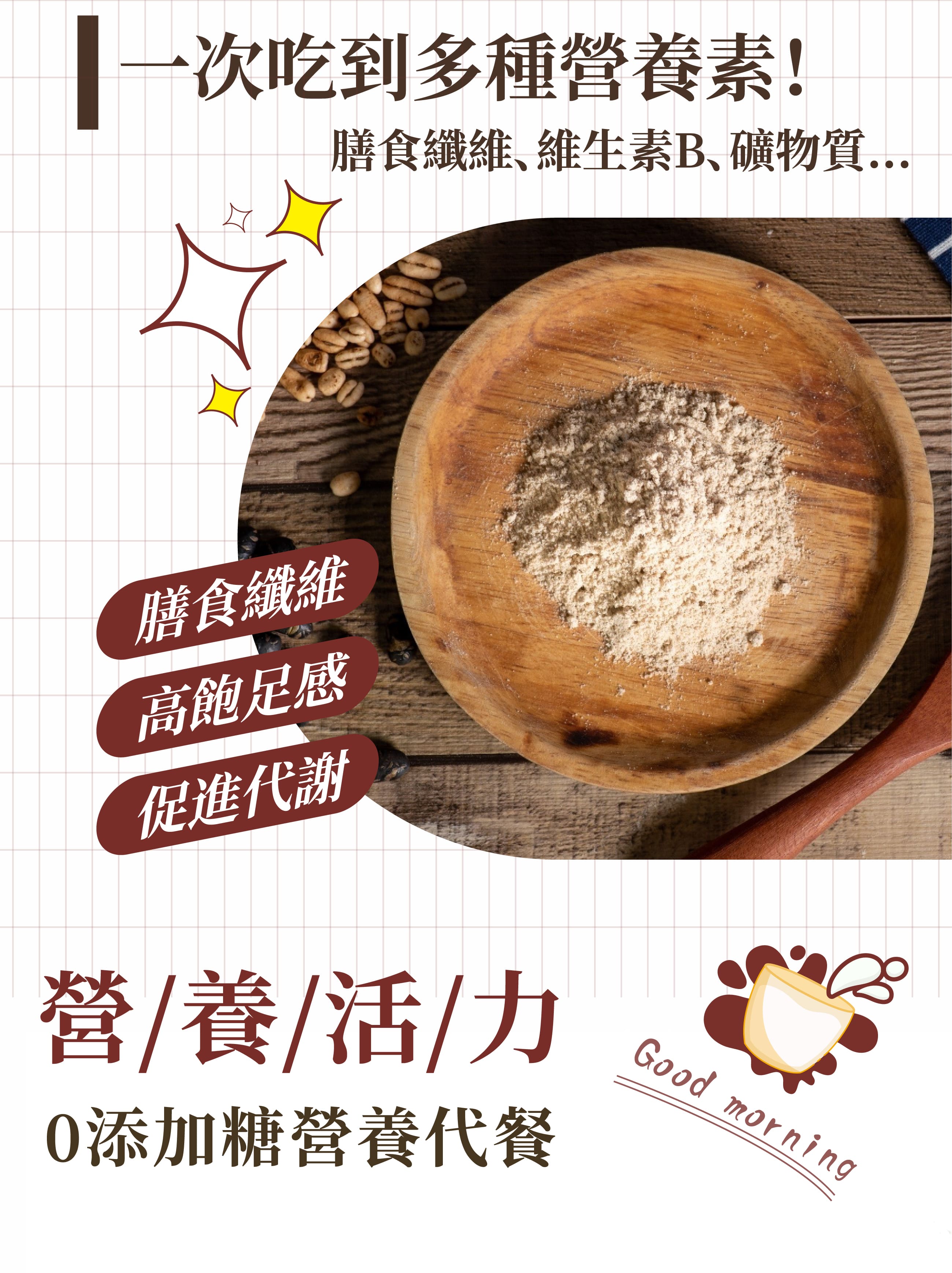 ✦可與豆漿、穀奶、優格等飲品搭配,低熱量輕鬆飲用