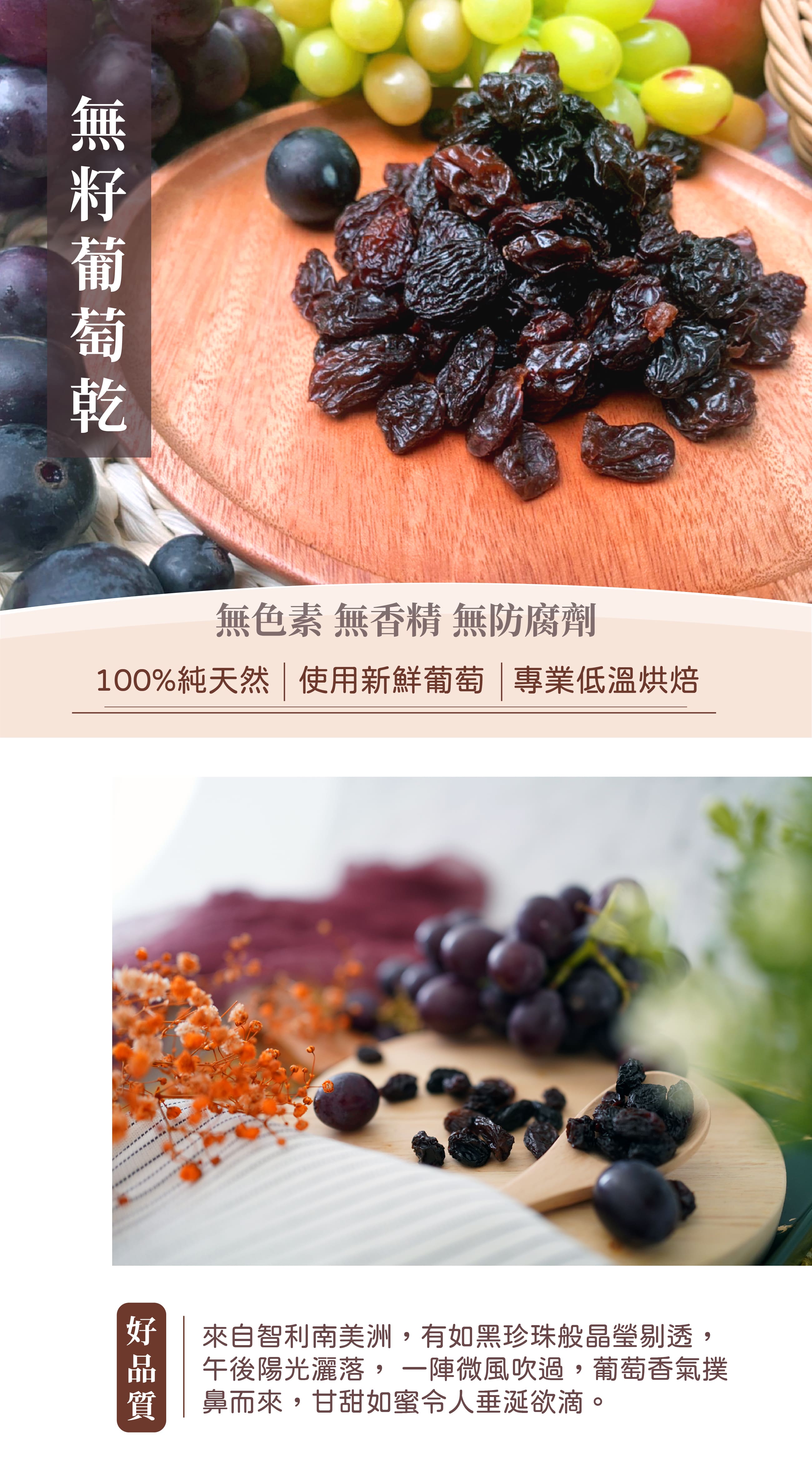 ✦嚴選智利無籽葡萄,低溫慢烘三天三夜